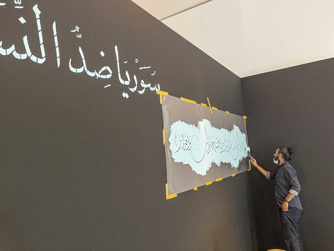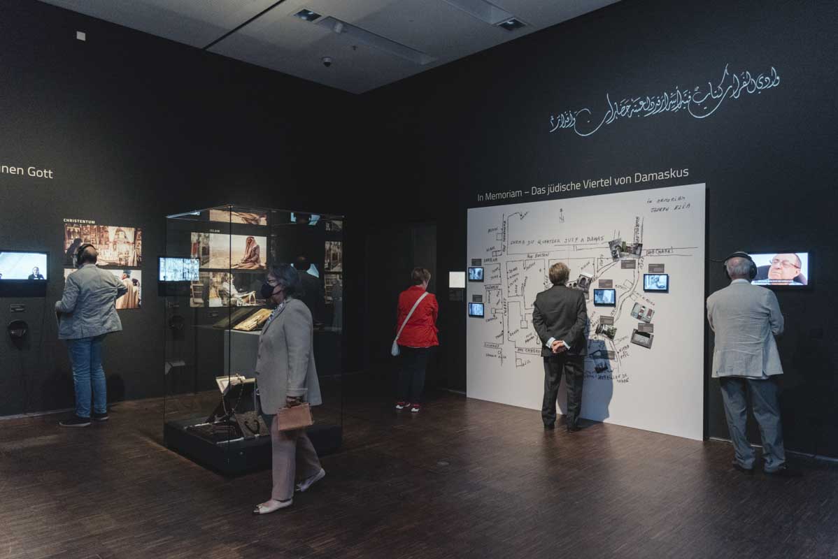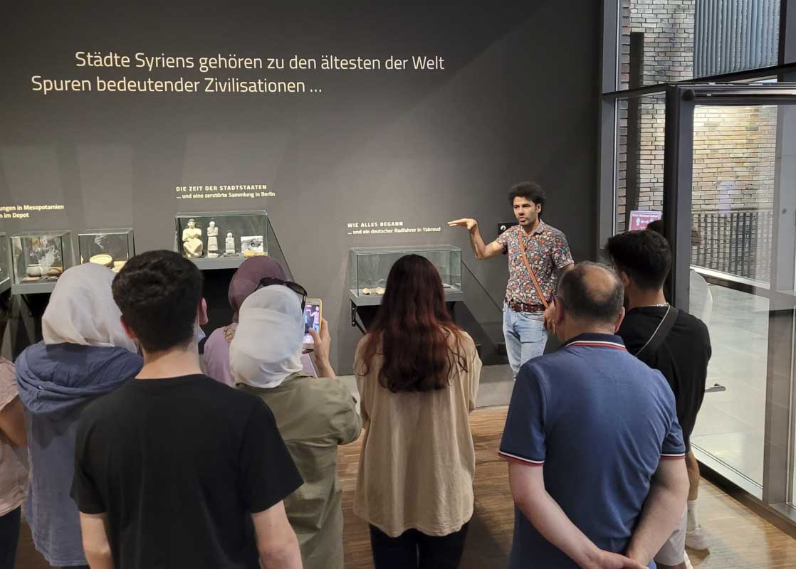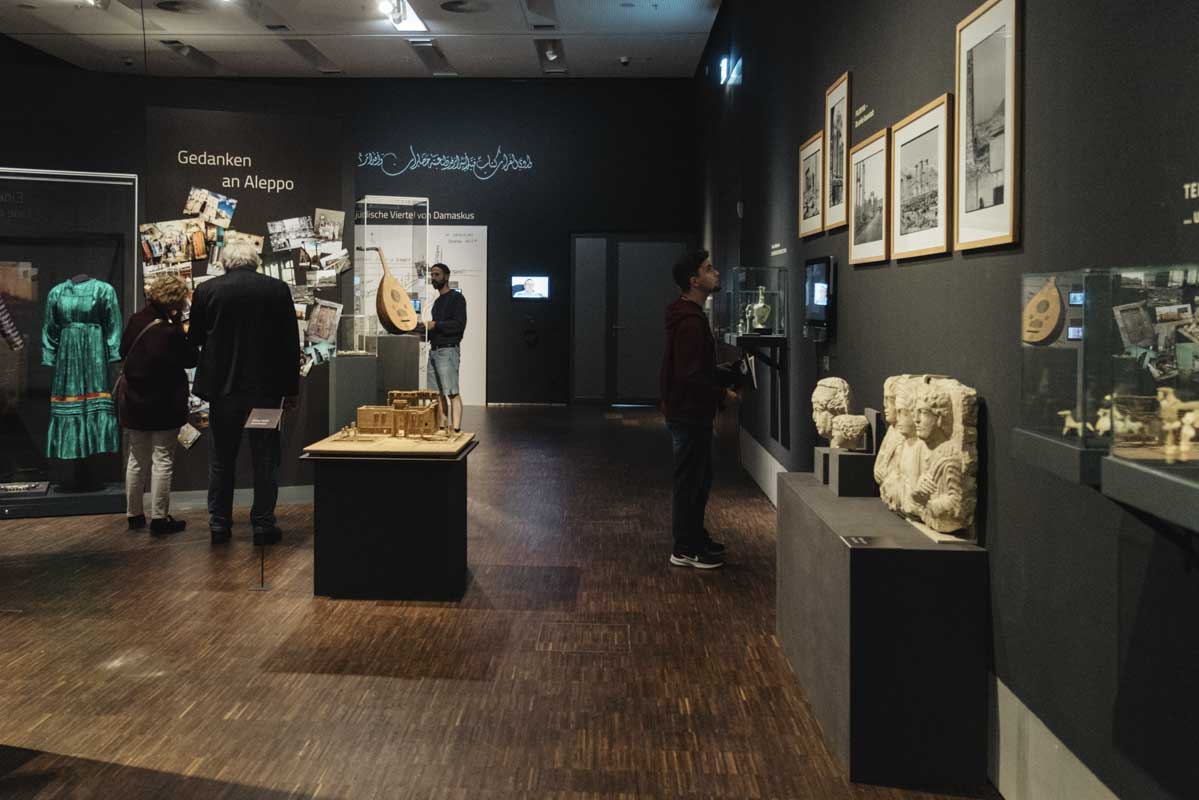 Mit der Ausstellung begibt sich Jabbar Abdullah auf die Spuren des kulturellen Gedächtnisses Syriens. Er zeigt historische, syrische Artefakte aus deutschen Sammlungen im Dialog mit zeitgenössischen Positionen und syrischer Alltags- und Erinnerungskultur. Entlang einer Zeitachse werden die Besucher*innen durch Zeugnisse frühester Menschheitsgeschichte u.a. aus den Höhlen von Yabroud geführt. Sie bekommen Einblicke in die Entwicklung von Städten und einen Eindruck von unterschiedlichen Zivilisationen, die in Syrien einst lebten. Ein zweiter Abschnitt der Ausstellung lädt ein in die Städte Aleppo, Damaskus und Raqqa, die die Besucher*innen als „Szenen“ erleben können. Kalligraphie, Filmmaterial und 3D-Projektionen beleuchten die kulturelle Vergangenheit Syriens und seine jüngste Geschichte insbesondere in diesen kulturellen Zentren.