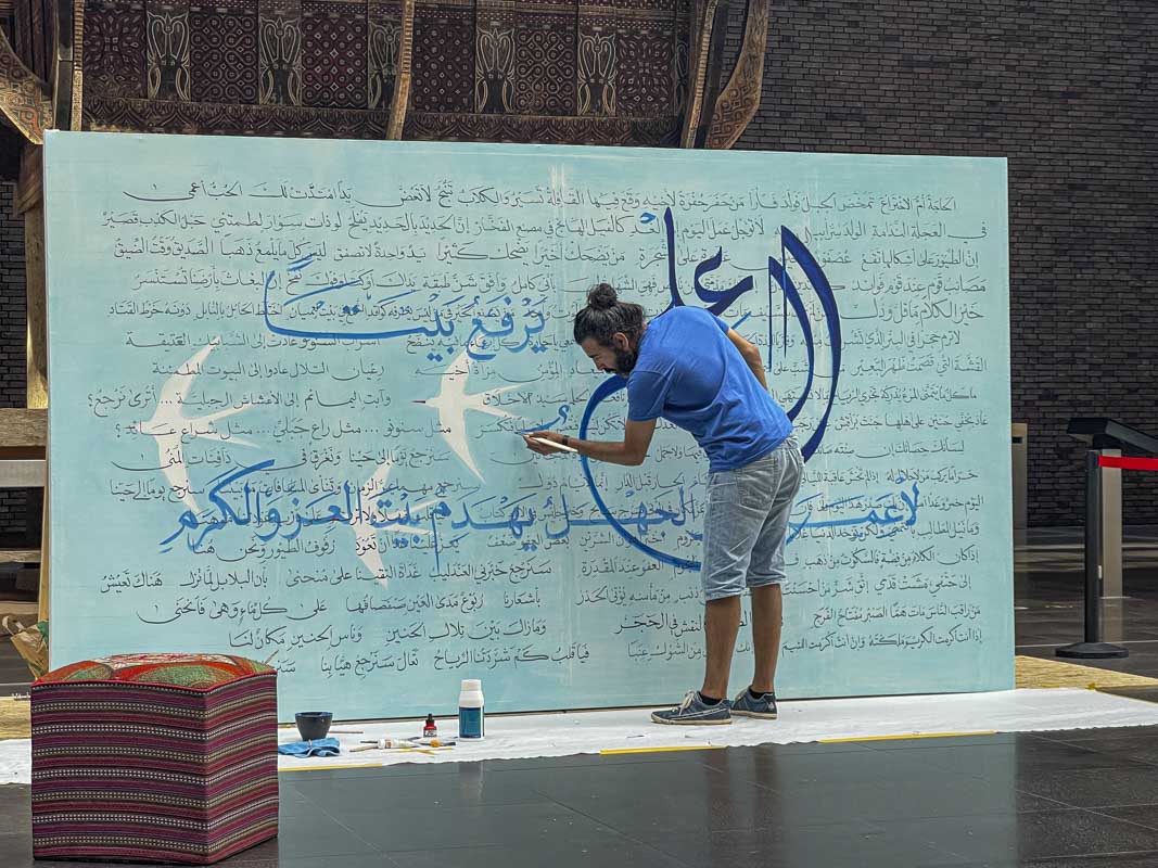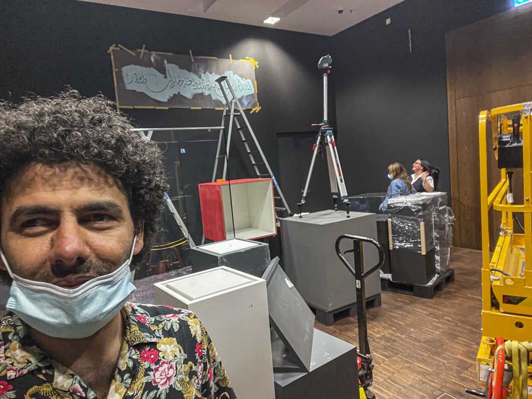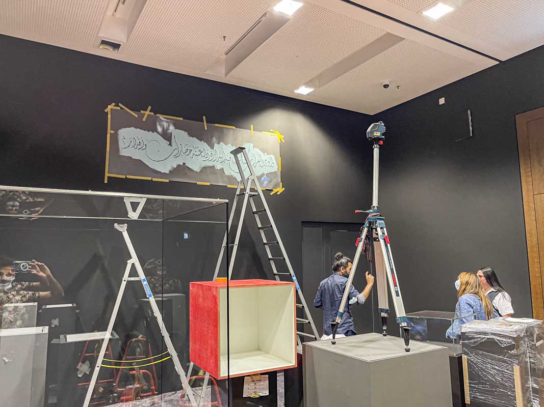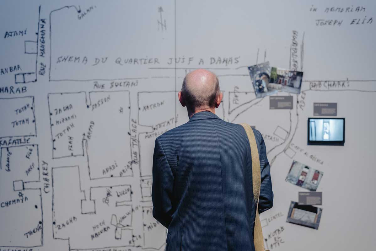 Mit der Ausstellung begibt sich Jabbar Abdullah auf die Spuren des kulturellen Gedächtnisses Syriens. Er zeigt historische, syrische Artefakte aus deutschen Sammlungen im Dialog mit zeitgenössischen Positionen und syrischer Alltags- und Erinnerungskultur. Entlang einer Zeitachse werden die Besucher*innen durch Zeugnisse frühester Menschheitsgeschichte u.a. aus den Höhlen von Yabroud geführt. Sie bekommen Einblicke in die Entwicklung von Städten und einen Eindruck von unterschiedlichen Zivilisationen, die in Syrien einst lebten. Ein zweiter Abschnitt der Ausstellung lädt ein in die Städte Aleppo, Damaskus und Raqqa, die die Besucher*innen als „Szenen“ erleben können. Kalligraphie, Filmmaterial und 3D-Projektionen beleuchten die kulturelle Vergangenheit Syriens und seine jüngste Geschichte insbesondere in diesen kulturellen Zentren.