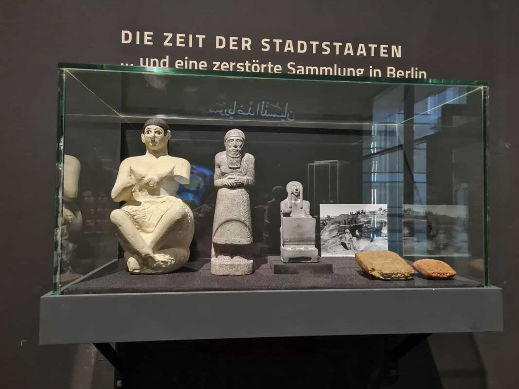 Über die gezeigten Objekte taucht ein neues Kapitel der syrisch-deutschen Geschichte auf, die die Frage aufwirft, wie die Objekte in die Sammlung deutscher Museen kamen. Vielfach waren es deutsche Wissenschaftler*innen, die mit ihrer archäologischen Forschung zum Verständnis der frühen Zivilisationen im heutigen Syrien beitrugen. Zahlreiche Funde brachten sie nach Deutschland. Im Zweiten Weltkrieg wurden viele davon zerstört, andere gerieten ihrerseits in Vergessenheit und werden mit der Ausstellung zum ersten Mal präsentiert.